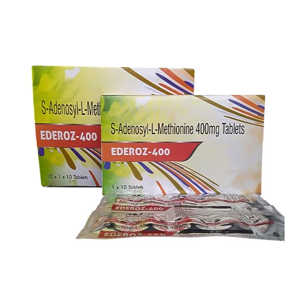 Ederoz 400 Tablet is a hepatoprotective medicine containing S-Adenosyl L-Methionine Disulfate Tosylate (400 mg). It is primarily used for the treatment of liver disorders such as intrahepatic cholestasis and other conditions where liver function is impaired. It helps protect liver cells from damage, improves detoxification, and supports overall liver function and recovery. This medicine also aids in maintaining healthy metabolism and reducing complications associated with liver disease. It should always be taken strictly as advised by a doctor for safe and effective use.