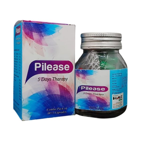 Pilease Capsules are a formulation used to support the management of piles (hemorrhoids) and related discomfort, as advised by a doctor. They help reduce symptoms like pain, swelling, itching, and bleeding associated with piles. This formulation may also support smooth bowel movement and reduce strain during passing stools, helping in better digestive comfort. Regular use can aid in improving rectal health and preventing recurrence of piles symptoms. The 30+5 combo pack offers added value for continued care. Pilease Capsules should be taken under medical guidance for safe and effective results.